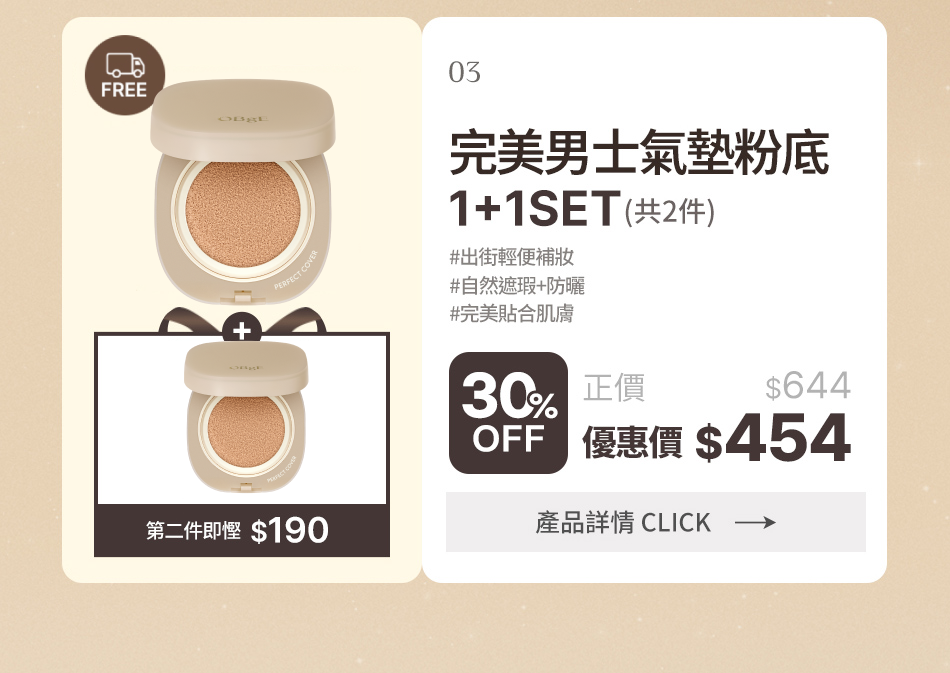 03-3 [順豐免運] 氣墊粉底 (柔沙色 1+1) SET