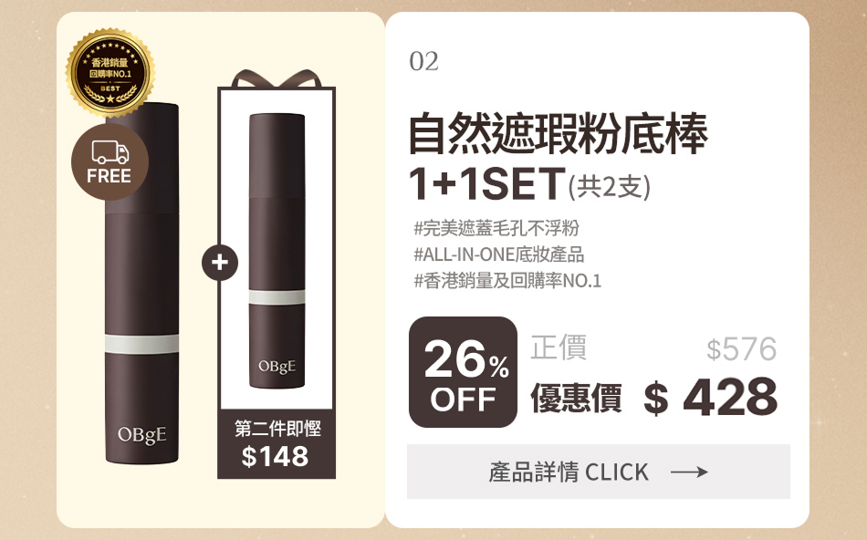 02-2. [順豐免運] 粉底棒 (米色 1+1) SET
