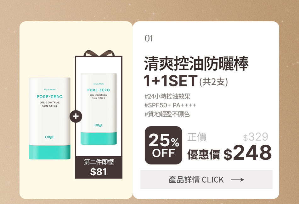 01. [30%OFF] 清爽控油防曬棒 1+1 SET