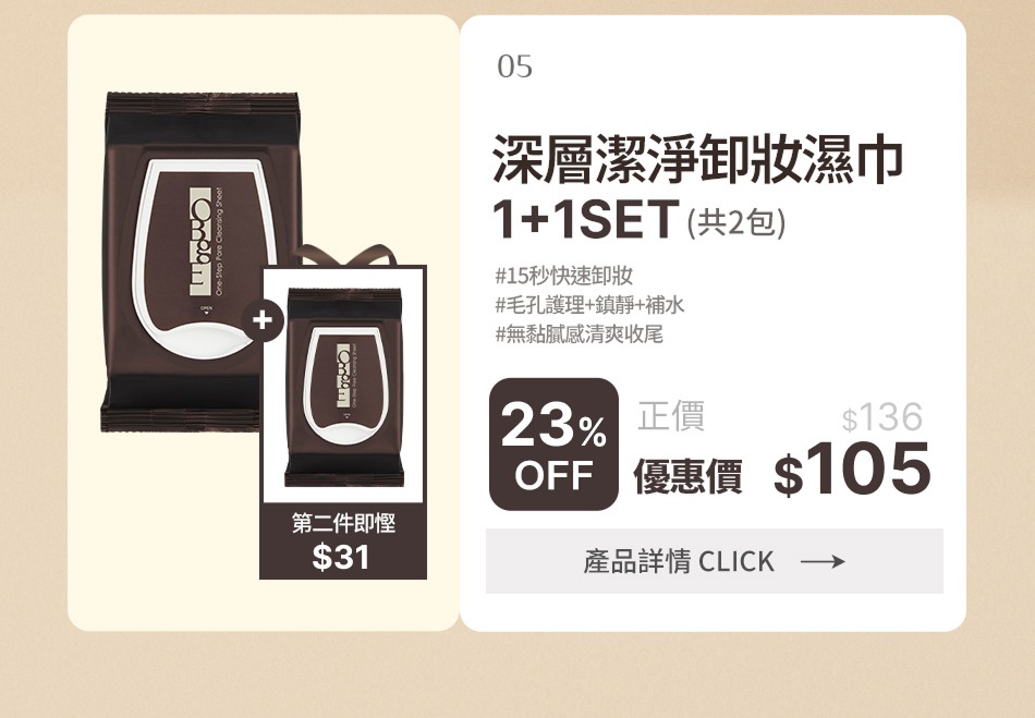05. [23%OFF] 深層潔淨卸妝濕巾 1+1 SET